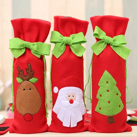 2 Pezzi 13x36cm Coperchi Per Bottiglie Di Vino Verde Rosso Buon Natale Per La Decorazione Domestica 2020 Navidad Table Decor Regalo Di Natale Felice Anno Nuovo,elk