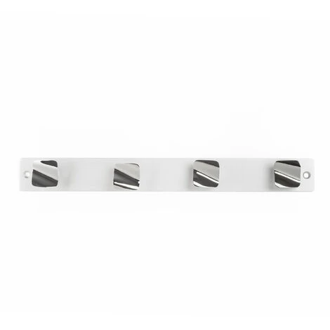 Appendiabiti da parete con 4 appendini | Stile decorativo | In Alluminio – Zama | Finitura cromata opaca | Grande capacità di carico | Misure 352*40*30mm | Sistema di fissaggio adesivo / avvitato | 1 unità