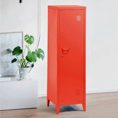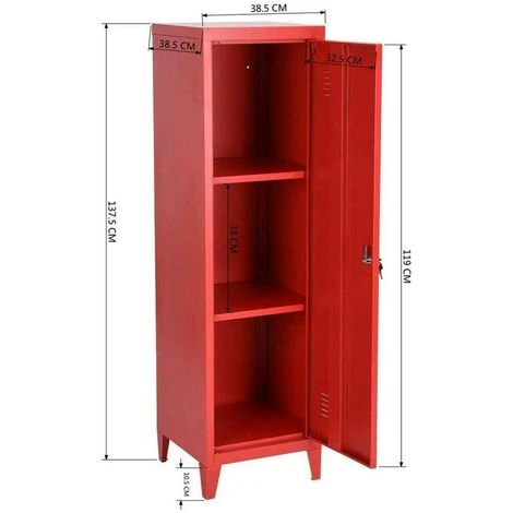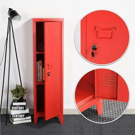 1 x Armadietto Armadio Spogliatoio in Metallo un Anta con Chiave 3 Scomparti Rosso