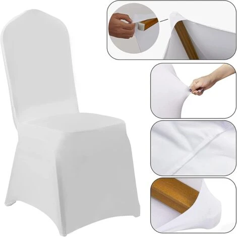 - 【MATERIALE PROTETTIVO ED ELASTICO】 Colore: bianco. Materiale: 94% poliestere e 6% spandex. Il materiale resistente con buone cuciture offre comfort ed elasticità extra. I coprisedia per matrimonio universali sono progettati per proteggere la sedia da versamenti accidentali, graffi di animali domestici, macchie quotidiane e lacrime.