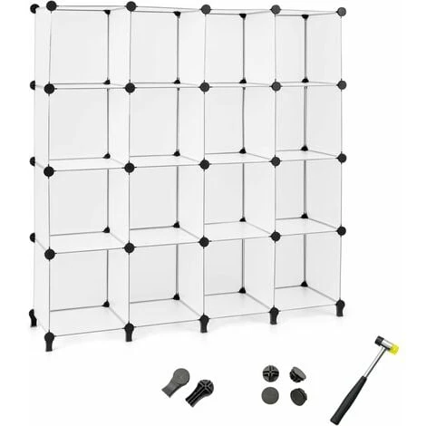 - Ampio spazio di archiviazione : Con 16 cubi di stoccaggio, questo scaffale modulare offre molto spazio per organizzare tutto in modo ordinato. Inoltre, il ripiano aperto con design semitrasparente facilita l’identificazione e il recupero degli oggetti desiderati senza rovinare gli altri oggetti.