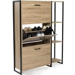 - 1 contenitore superiore con deflettori, 2 contenitori inferiori e 2 ripiani aperti per un ampio spazio espositivo e di archiviazione.
