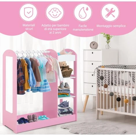 Design a Misura di Bambino e Specchio Infrangibile: Questo centro di abbigliamento è stato progettato appositamente per i bambini di età superiore ai 2 anni. Con un’altezza ragionevole di 100 cm e un design aperto, il nostro armadio consente di riporci o rimuovere comodamente i vestiti. Inoltre, il raffinato specchio permette ai bambini di vestirsi meglio.