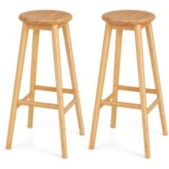 Il nostro set di sgabelli da bar in bambù unisce il design moderno e una comoda seduta! Realizzato in bambù solido e naturale, questo sgabello è molto robusto, resistente alla deformazione e durevole. La struttura resistente e rinforzata regge fino a 150 kg e offre un supporto stabile quando ti siedi davanti al bancone del bar per bere o mangiare. I cuscinetti antiscivolo non solo aumentano la stabilità ma proteggono anche il pavimento dai graffi. Inoltre, questo sgabello da bar include 4 poggiapiedi su cui rilassare i piedi. Dal design semplice e con l’aspetto moderno, il nostro sgabello da bar di 79 cm è un’aggiunta pratica e appariscente in cucina, ristorante, bistrot, bar, ecc.