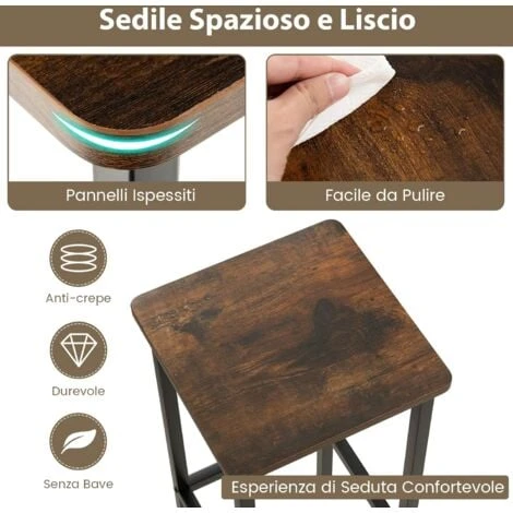 Questi sgabelli da bar hanno una struttura in ferro molto resistente che regge fino a 150 kg. La superficie di legno ha una consistenza ruvida all’apparenza ma è liscia e si pulisce facilmente per sedersi comodamente. I 4 cuscinetti antiscivolo e il poggiapiedi garantiscono la stabilità e la comodità facendoti rilassare al massimo. L’aspetto alla moda e il design semplice sono perfetti per bar, casa, cucina, feste e aggiungono un tocco unico all’ambiente.