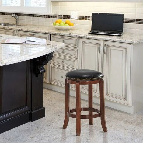 Ideale per Vari Ambienti: La superficie nera e le gambe in legno di gomma aggiungono un senso rustico ed elegante alla casa e si abbinano a tutti gli stili decorativi. Inoltre, la decorazione con i chiodini in ottone e le gambe curve abbelliscono lo sgabello. È ideale da usare in cucina, sala da pranzo, bar, ristorante, ecc.