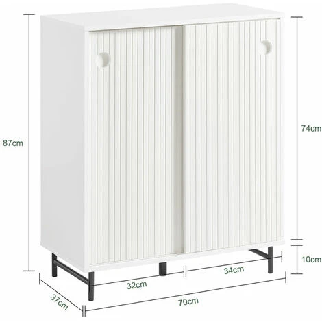 Le ante scorrevoli tengono lontana la polvere dal contenuto della cassettiera. 3 ripiani su ciascun lato sono regolabili a 6 altezze. Personalizzali per il tuo uso.
