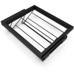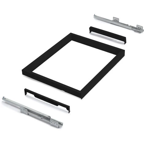 Telaio con guide soft-close ed estrazione parziale. Realizzato in alluminio e plastica con finitura verniciata nera testurizzata.