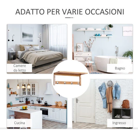 Con questo appendiabiti HOMCOM, potrete ordinare comodamente qualsiasi vestito o borsa in casa. Grazie al suo design versatile, si adatta ad ingresso, soggiorno, camera da letto, cucina o in balcone. Realizzato in bambù resistente all’umidità, ideale dunque anche per il bagno. Oltre ai 4 ganci, presenta anche una mensola pratica superiore.