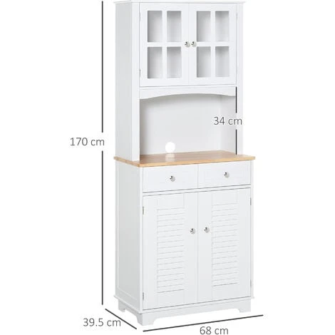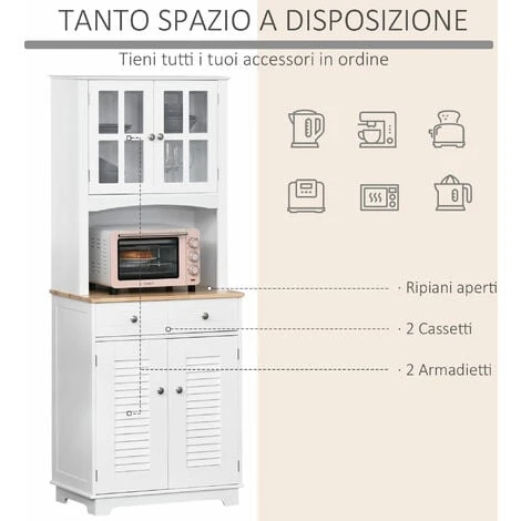 Organizza la tua cucina e crea spazio aggiuntivo con questo armadio credenza HOMCOM. Il suo stile classico e il colore chiaro sono perfetti per arredare ogni tipo di cucina e i due armadietti ti offrono diverse soluzioni per sistemare posate, pentole, piatti ed elettrodomestici. La struttura è costruita in legno: è robusta e richiede pochissima manutenzione.