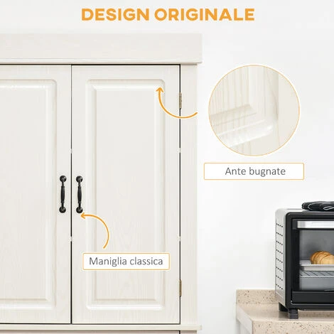 Amplia lo spazio nella tua casa con questo mobile cucina in stile coloniale firmato HOMCOM. Grazie alle venature del legno, alle maniglie in stile vintage e alle ante bugnate porta un tocco di eleganza nei tuoi ambienti. Ideale da usare come mobile per soggiorno, in cucina, in salotto e ovunque hai bisogno di spazio per riporre ciò che ti serve. La struttura solida e sicura grazie al sistema antiribaltamento di questo mobile dispensa ti accompagnerà a lungo nella tua vita di tutti i giorni.