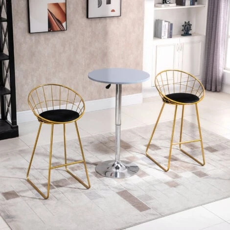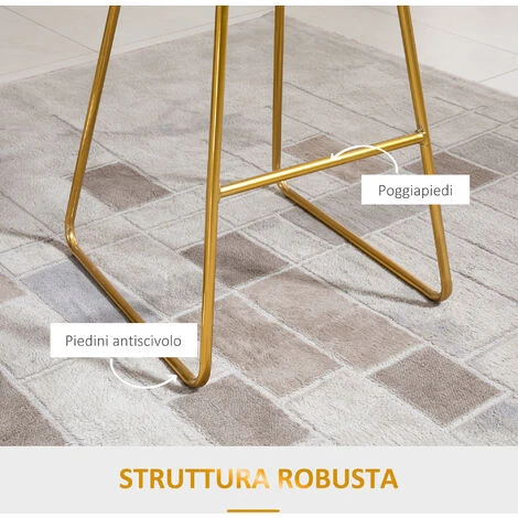 Questi originali sgabelli da bar firmati HOMCOM sono la soluzione ideale per chi vuole portare un tocco glamour nei propri ambienti. Il morbido cuscino con rivestimento in velluto rende la seduta confortevole e la struttura in metallo dorato aggiunge una nota chic. Il design avvolgente e il poggiapiedi integrato offrono il giusto supporto per sedersi comodamente. Unisci comfort e stile portando questi sgabelli moderni in casa o nel tuo locale!