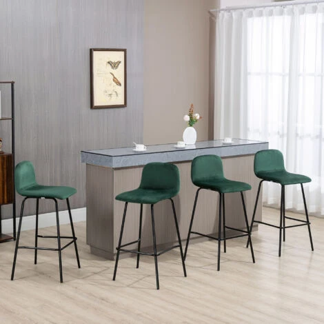 Massimizza lo spazio della tua zona bar o della sala da pranzo con questo moderno set di sgabelli da bar HOMCOM. Sia che tu voglia iniziare la mattina con una colazione o concludere la serata con un drink, questo set di sedie alte si adatterà alle tue esigenze. Il tessuto morbido e vellutato garantisce un look elegante e un elevato comfort. Le solide gambe in acciaio reggono fino a 120 kg, mentre il poggiapiedi inferiore offre alle gambe un’esperienza di seduta rilassante e stabile.