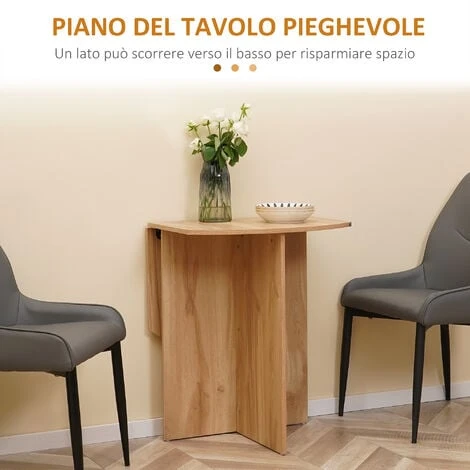 Con questo tavolo da pranzo lo spazio non è un problema! Il design pieghevole del tavolo da cucina HOMCOM permette di inserirlo facilmente in diversi ambienti della casa, per darti uno spazio su misura per le tue esigenze. Ideale per accomodare 4 persone quando completamente aperto, questo tavolo da soggiorno è il complemento perfetto per ogni casa.