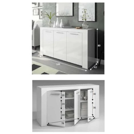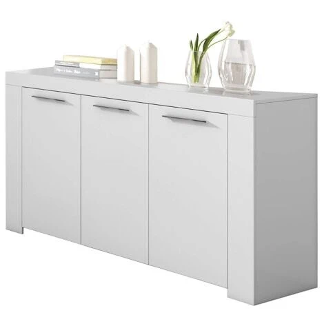 Madia 144×80 cm Bianco opaco con tre ante e tre ripiani interni
