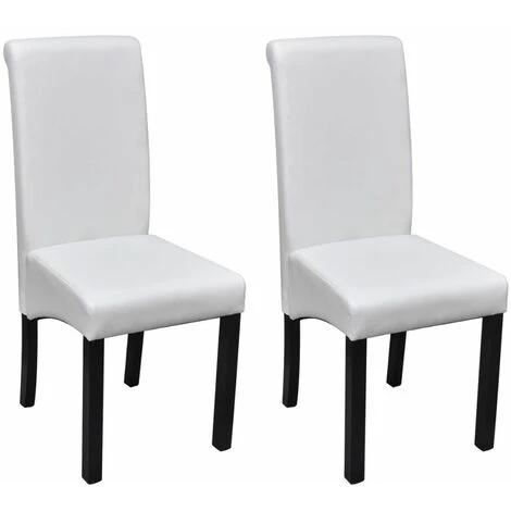 Queste eleganti sedie di alta qualità in pelle sintetica saranno una meravigliosa scelta da usare in casa. Le sedie sono lavorate in più materiali di alta qualità, quindi sono resistenti ed impermeabili, mentre l’acqua e le macchie non sono più un problema. Grazie al legno di qualità usato, le sedie hanno gambe robuste e stabili, mentre il sedile imbottito a schiuma è molto comodo. Queste sedie aggiungeranno un tocco moderno ed elegante alla tua casa! Possono essere usate anche come sedie da ufficio piene di stile. La consegna include 2 sedie da pranzo in pelle artificiale bianca.