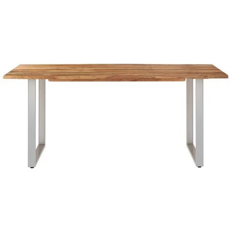 Questo tavolo da pranzo con uno stile industriale e rustico sarà un’aggiunta distintiva alla vostra cucina o sala da pranzo. Questo tavolo da pranzo è realizzato in legno massello di acacia, un legno tropicale che è famoso per la sua robustezza e per le sue ricche venature. La forma e i bordi naturali del piano del tavolo vengono elaborati deliberatamente, in modo che il carattere originale e l’aspetto naturale dell’albero siano portati nel vostro arredamento! Ogni fase del processo viene eseguita con la massima cura, che si tratti di lucidatura, verniciatura o laccatura. Le gambe in acciaio completano l’aspetto industriale e contribuiscono alla costruzione robusta. Il tavolo da pranzo è facile da montare. Nota importante: I colori possono variare da pezzo a pezzo, rendendo ciascun mobile unico; la consegna è casuale.