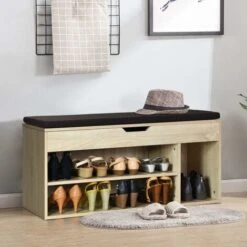 Homcom Scarpiera Panca Con Sedile Imbottito Ribaltabile Da Ingresso Legno 80x30x47cm Bianco