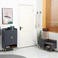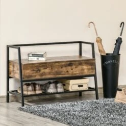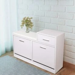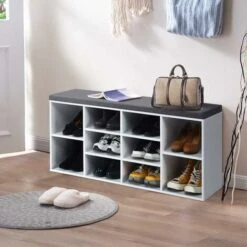 Mobile TV Mobile Da Ingresso Panca Con Seduta Scarpiera Con 2 Ribalte 110x26x52cm FSR132-W SoBuy