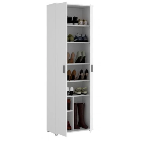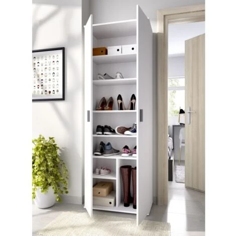 Scarpiera 190 cm Adam Bianco opaco con due ante e sei ripiani