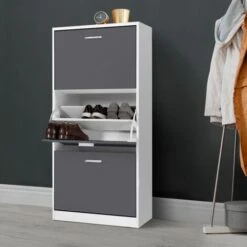 Scarpiera Bianca Con 3 Ante Grigie