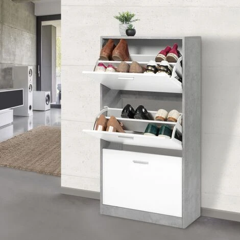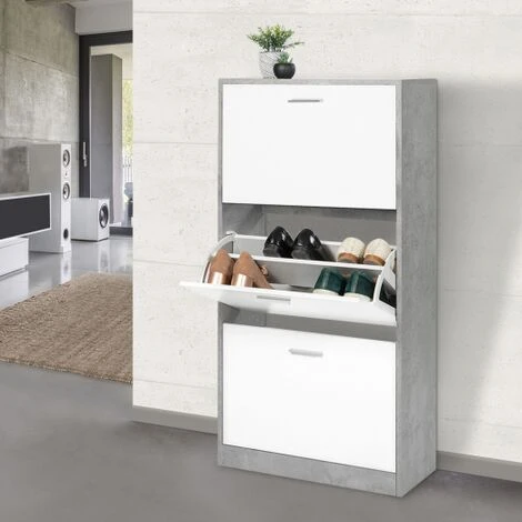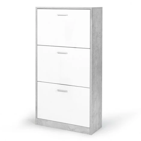 Scarpiera Effetto Cemento Con 3 Ante Bianche
