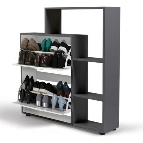 Grazie alla nostra scarpiera grigia con 2 ante bianche e un ripiano, potrete riporre tutte le vostre scarpe e altri oggetti! Risparmierete tempo e spazio in casa!Il suo design trendy, moderno e funzionale gli permette di adattarsi a qualsiasi tipo di interno!La struttura di questo mobile è realizzata in truciolato (PB 1,5 cm di spessore) ed è solida e robusta.Questa scarpiera ha 2 ante e 2 vani portaoggetti. Il ripiano è dotato di 3 vani portaoggetti. Ogni vano della scarpiera si apre con la maniglia.Questa scarpiera offre una grande capacità di stoccaggio, in quanto può contenere fino a 12 paia di scarpe (6 paia per spazio).Ogni spazio è dotato di un pannello per separare le paia di scarpe. Questo bellissimo mobile ha 5 gambe.Facile da montare.Per evitare il rischio di ribaltamento, si consiglia di fissarlo alla parete.Scarpiera per misure fino al 41.Dimensioni totali: lunghezza 90 cm x larghezza 24 cm x altezza 100 cm.Dimensioni della scarpiera: lunghezza 60 cm x larghezza 24 cm x altezza 80 cmDimensioni dell’anta della scarpiera: lunghezza 56,5 cm x altezza 34,5 cmDimensioni della scarpiera: lunghezza 56,5 cm x profondità 24 cm x altezza 34,5 cmDimensioni della maniglia dell’anta della scarpiera: lunghezza 10,5 cm x larghezza 2 cmSpessore della maniglia: 1 cmAltezza dal pavimento alla prima maniglia: 38,5 cmAltezza dal pavimento alla seconda maniglia: 73,5 cmDimensioni del ripiano: lunghezza 60 cm x larghezza 24 cm x altezza 100 cmAltezza del 1° ripiano: 23,5 cmAltezza del 2° ripiano: 29 cmAltezza del 3° ripiano: 40 cm Altezza dal ripiano alla scarpiera (altezza del 4° ripiano): 21 cmAltezza delle ante a battente: 37 cmModello disponibile in diversi colori sul nostro negozio online:- Scarpiera grigia con 2 ante bianche e ripiano- Scarpiera in finto faggio con 2 ante bianche e ripianoTrovate l’intera gamma di scarpiere nel nostro negozio online!