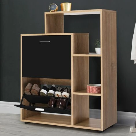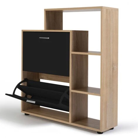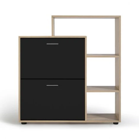 Scarpiera In Finto Faggio A 2 Ante Nera Con Ripiano