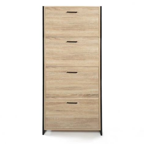 Descrizione della scarpiera LUIS dal design industrialeCon la sua capienza di 24 paia di calzature, ossia 6 paia per ogni vano, permetterà a ogni membro della famiglia di riporre le proprie scarpe al riparo dalla polvere! I suoi 4 vani sono separati internamente da un divisorio intermedio, per organizzare al meglio il guardaroba delle scarpe.L’ingegnoso formato a ribalta delle ante permette di risparmiare spazio e ne semplifica l’apertura.Le graziose maniglie integrate e la struttura in metallo nero donano design, robustezza e stabilità al mobile.In bi-materiale legno effetto faggio e metallo, sfoggia colori caldi e naturali che renderanno l’ingresso uno spazio accogliente e ben ordinato! Un look industriale sobrio per un ingresso perfettamente organizzato!Le sue finiture curate offrono la possibilità di collocarla nella stanza del bucato, nel guardaroba o persino nell’ingresso!Basterà poi posare graziosi oggetti decorativi o piccole piante da interni sul suo piano superiore.Può anche essere abbinata in vari esemplari per soddisfare tutte le esigenze!Ultrapiatta, con una profondità di 23,5 cm e un design slanciato, farà risparmiare spazio e ridurrà al minimo l’ingombro!Il suo formato leggermente rialzato è ideale per pulire sotto al mobile.Un mobile moderno e discreto perfetto per non lasciare più le scarpe in giro per la casa, riponendole al riparo dagli sguardi!Pratica e decisamente alla moda!Da fissare al muro per evitare ogni rischio di ribaltamento.Dimensioni della scarpiera LUIS con design industrialeDimensioni globali fuori tutto: L. 63,2 x l. 23,5 x Alt. 154 cmAltezza delle ante a ribalta: 35 cmScarpiera prevista per scarpe fino al numero 41Modello disponibile in versione 2 o 3 anteScarpiera LUIS 2 anteScarpiera LUIS 3 ante