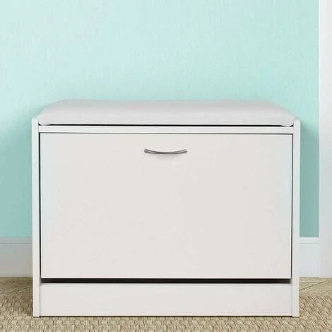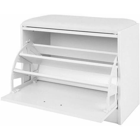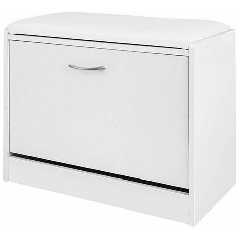 1 x Scarpiera Panca 1 Anta Tripla Profondita con Seduta in Eco Pelle Bianco 60x30x48