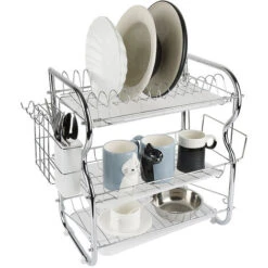 ★ Materiale di alta qualità- Scolapiatti a 3 strati è realizzato in metallo cromato di alta qualità, sicuro e resistente, resistente e durevole.