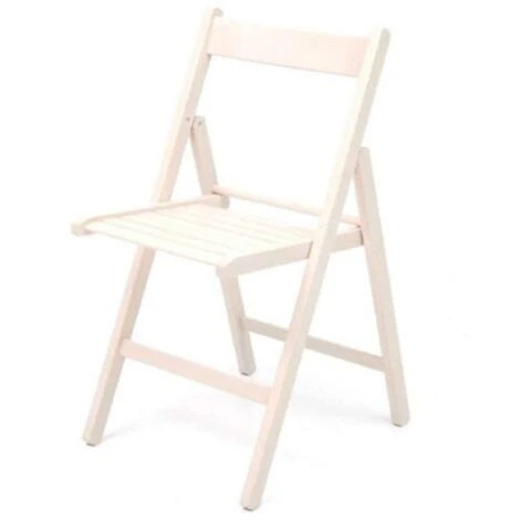 Sedia Pieghevole in legno di faggio sbiancata, bianco tenue, ideale in casa e in campeggio, consigliata per attivita’ di catering.