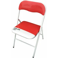 sedia pieghevole con seduta imbottita in pvc tubo verniciato bianco lucido: tondo19 x 0,8 mm dimensioni: cm 44 x 45 x 79 h