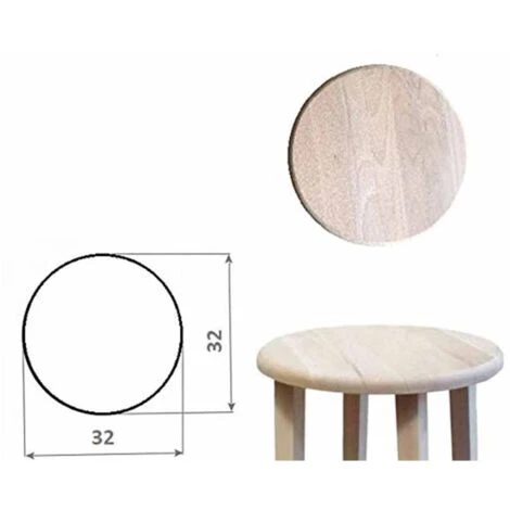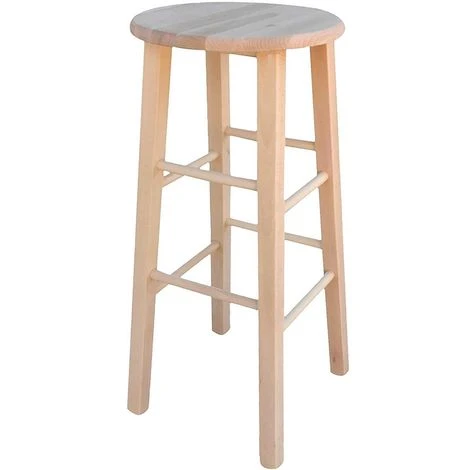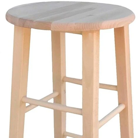 Sgabello in legno massello con seduta rotonda grezzo da verniciare con piedi dritti