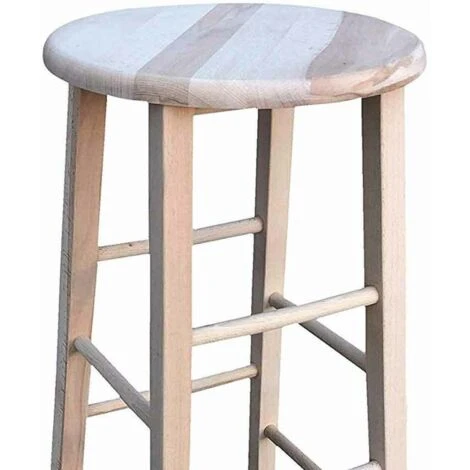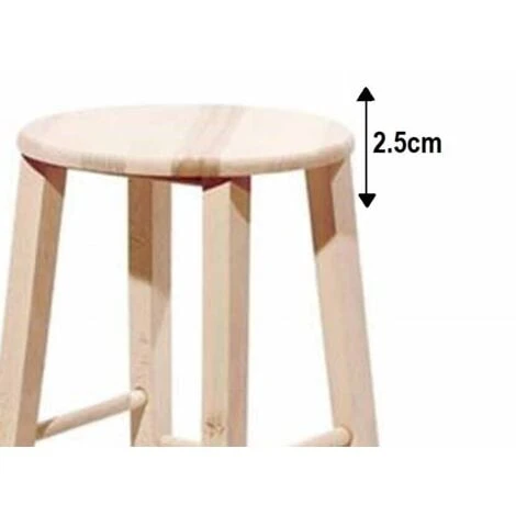 Sgabello in legno massello con seduta rotonda grezzo da verniciare con piedi dritti