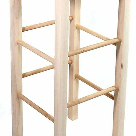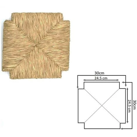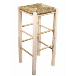 Sgabello in legno massello con seduta quadrata in paglia grezzo da verniciare con piedi dritti