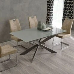Tavolo Da Pranzo Rettangolare In Vetro Allungabile 160x90x75 – Altea Grigio