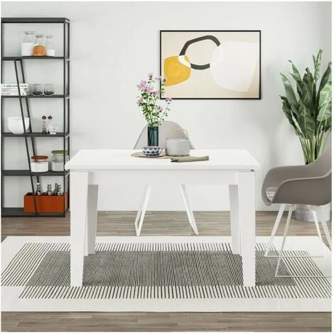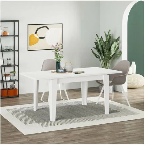 Tavolo da pranzo con gambe inclinate. Ottima soluzione salvaspazio per vari utilizzi, sia in cucina che nella sal da pranzo. Solido e stabile può allungarsi fino a 170 cm grazie alla prolunga da 50 cm.
