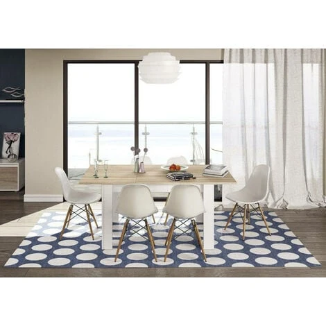 CARATTERISTICHE TECNICHE – Prodotto composto in legno laminato con spessore di 22 e 15 mm, materiale resistente agli urti e i graffi, duraturo nel tempo ed impermeabile – Bordi con rifinitura in melaminico con spessore di 0,6 mm – Classificazione secondo contenuto o rilascio di formaldeide di TIPO E1 – Guide scorrevoli metalliche per l’apertura del tavolo – Tacchetti ABS antirumore e antigraffio per la parte inferiore del mobile – Chiusura metallica per il bloccaggio del tavolo – Peso massimo supportato per tavolo: Kg 25.