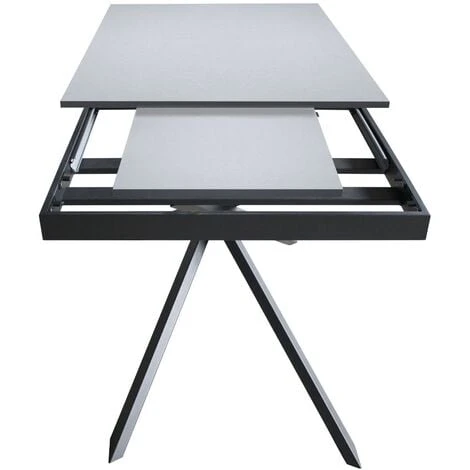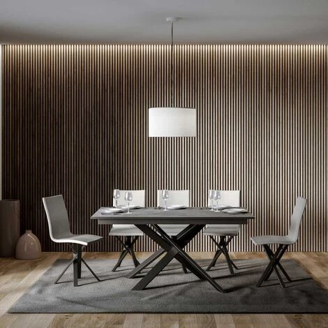 Dotato di una allunga ad incastro da 60 cm che permette al tavolo di raggiungere i 220 cm, misura utile ad ospitare fino a 10 persone in tutta comodita’. Quando non utilizzata, l’allunga puo’ essere riposta al di sotto del piano, in modo da non creare ingombro. Il piano in microparticelle di legno poggia e sporge da un robusto basamento in ferro verniciato antracite.