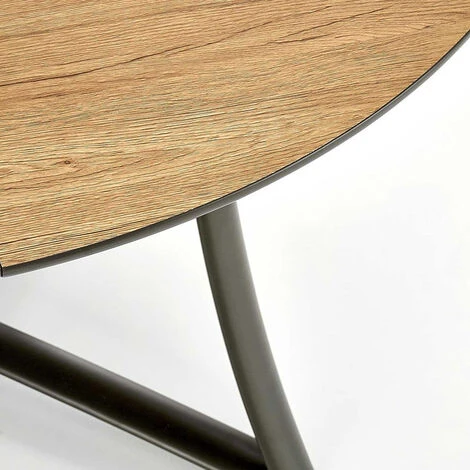 La finitura di Ortensia Gihome® contribuisce a renderlo unico: il piano rotondo in rovere dorato contrasta piacevolmente con il nero dell’allunga centrale, mentre la struttura con basamento a 4 gambe incrociate in metallo antracite forma un raffinato gioco geometrico che non passerà inosservato.