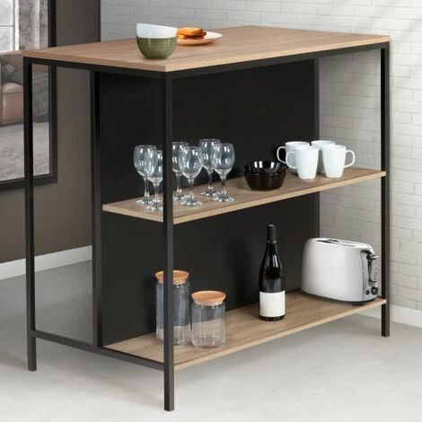 Il tavolo da bar DETROIT è fatto per voi!Il tavolo da bar DETROIT sarà perfetto in qualsiasi interno!Si tratta di un mobile multifunzionale che può essere utilizzato come piano di lavoro, spazio di archiviazione e tavolo alto per mangiare in movimento o bere un drink con gli amici in un’atmosfera rilassata!Le sue dimensioni compatte sono ideali per arredare piccoli spazi come i monolocali o per delimitare lo spazio della vostra cucina a vista! Fate scivolare gli sgabelli da bar sotto il vassoio per risparmiare spazio!I suoi 2 ripiani sono molto pratici e vi permetteranno di riporre stoviglie, piccoli elettrodomestici o alimenti, ottimizzando così il vostro spazio!La sua struttura in truciolato (PB 1,5 cm di spessore) e metallo nero (2×2 cm) garantisce solidità e stabilità.Si tratta di un mobile compatto e ultra-funzionale, progettato appositamente per i piccoli spazi!Dimensioni del tavolo da bar con ripianiDimensioni isola: lunghezza 100 cm x larghezza 60 cm x altezza 95 cmDimensioni dei ripiani: lunghezza 100 cm x larghezza 30 cmAltezza tra i ripiani: 40 cmAltezza delle gambe: 10 cmIl tavolo bar a isola è disponibile anche con i 2 sgabelli alti:Tavolo bar a isola DETROIT e 2 sgabelli di design industrialeTrovate i nostri mobili ed elementi per la cucina, nonché l’intera collezione industriale sul nostro shop online!