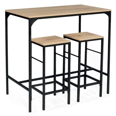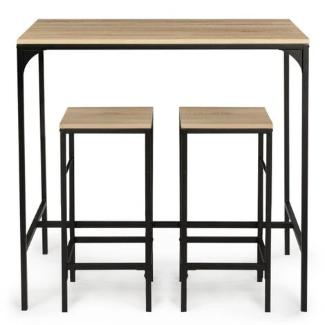Vi piace pranzare in movimento, con uno spirito rilassato? Sarà perfetto in casa o in ufficio. Questo bancone da cucina è molto trendy e il suo spirito loft si sposa perfettamente con la sua utilità: mangiate velocemente intorno a questo tavolo in piedi o prendetevi il tempo di cenare seduti comodamente sugli sgabelli. Il tavolo alto DETROIT ha un design moderno con piano in truciolato e struttura in metallo nero. Il tavolo e i suoi 2 sgabelli saranno un elemento centrale della vostra cucina o sala da pranzo. Si tratta di un tavolo da cucina o da sala da pranzo, da utilizzare come tavolo da cucina con isola centrale o da collocare in soggiorno. Fate scivolare gli sgabelli sotto il tavolo per risparmiare ancora più spazio! Il colore del legno del piano del tavolo e della seduta degli sgabelli e il nero della struttura si sposeranno perfettamente con l’arredamento e daranno un tocco industriale di grande tendenza.Questo tavolo e i suoi 2 sgabelli sono ideali se cercate un tavolo da bar che sia al tempo stesso di design e funzionale.Farà un figurone in casa o in ufficio!Dimensioni del tavolo da bar e dei 2 sgabelli DETROIT – legno e metallo- Dimensioni complessive del tavolo da bar: lunghezza 100 cm x larghezza 45 CM x altezza 95 CM- Dimensioni complessive degli sgabelli : Lunghezza 32 CM x larghezza 32 CM x altezza 67 CM- Altezza del poggiapiedi: 15,5 CM- Dimensioni del tubo (tavolo e sgabelli): 2 x 2 CM- Spessore del piano del tavolo e delle sedute: 1,5 CM- Capacità: 2 personeDisponibile anche in versione 4 sgabelli e 6 sgabelli.Trovate la nostra intera collezione industriale sul nostro negozio online!