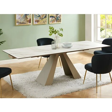 Con Il tavolo da pranzo LOZIPA avrai a disposizione uno splendido piano in vetro temperato e ceramica che, grazie a un sistema di 2 prolunghe, può ospitare fino a 10 persone. Il vassoio è sostenuto da una solida base in metallo, il cui colore donerà morbidezza ai tuoi interni.