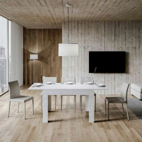 Tavolo allungabile Bibi, un modello caratterizzato dall’essenzialità delle sue linee geometriche: un tavolo che grazie alla sua versatilità si abbina sia agli ambienti più moderni che ai più classici. Una allunga da 60 cm permette di estendere il tavolo fino a 180 cm. Spingendo il piano del tavolo si genera uno spazio in cui inserire l’allunga. Quando non utilizzata, l’allunga può essere riposta al di sotto del piano. Gambe, piano e allunga sono realizzati in microparticelle di legno.