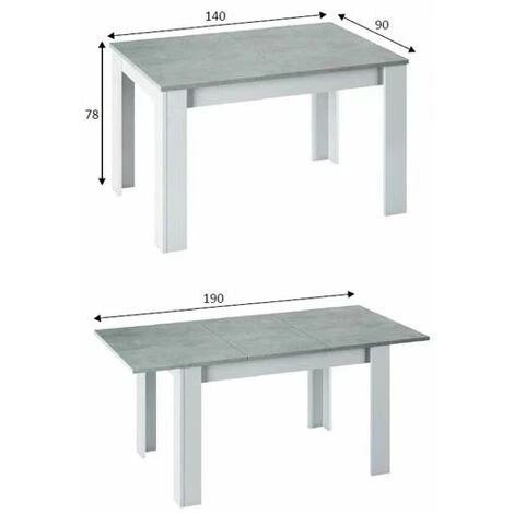 Tavolo aperto: 78 cm (altezza) x 190 cm (larghezza) x 90 cm (prof.)