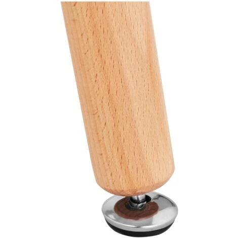 Grazie ai fori preforati, il montaggio del telaio metallico non potrebbe essere più facile: Le quattro gambe del tavolo sono realizzate in legno di faggio chiaro e sono semplicemente avvitate nelle filettature del telaio. Le gambe sono regolabili per compensare le irregolarità e garantire un supporto stabile. Inoltre, i tappi di protezione in gomma evitano fastidiosi graffi sul pavimento e danno al tavolo quadrato un’ulteriore sicurezza. Grazie ai materiali utilizzati, questo moderno tavolo 80 x 80 cm è molto facile da pulire.