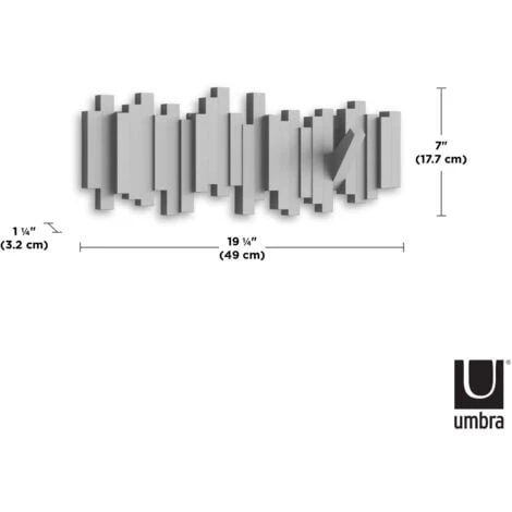 Sticks è un attaccapanni da parete scultoreo ma funzionale, perfetto per appendere ciò che desideri in qualsiasi ambiente della casa, dell’ufficio o della zona notte. Il design decorativo di Sticks gli dà l’aspetto di un’opera d’arte moderna, finché non si estraggono i cinque bastoncini ribaltabili che fungono da ganci, dopo l’uso, i ganci tornano in sede fornendo nuovamente a Sticks un profilo pulito e uniforme. Ogni gancio ribaltabile ha un’incredibile portata di 2,2 kg (5 lb), permettendoti di appendere un gran numero di capi e oggetti. Sticks è dotato di tutti gli attrezzi per il montaggio per un’installazione facilissima e veloce. Contenuto della confezione