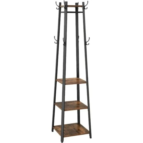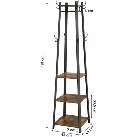 - DESIGN INNOVATIVO E STABILE: Con i lati leggermente affusolati verso l’alto, la struttura in ferro nero opaco conferisce a questo appendiabiti una forma più che unica; fornisce inoltre stabilità e sostiene saldamente i tre ripiani