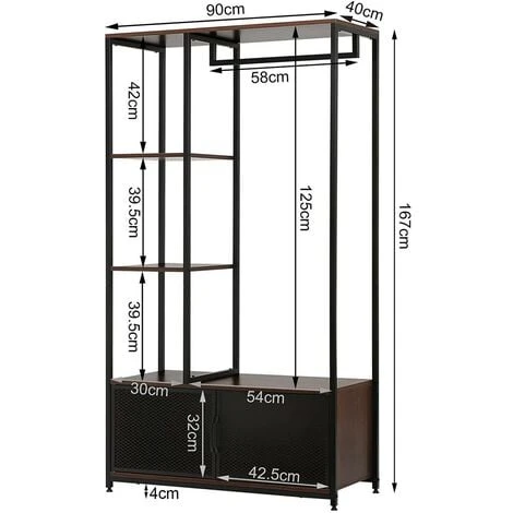 ●AMPIA CAPIENZA: questo appendiabiti da terra è. formato da una parte per appendere i vestiti e un&rsquo.altra per riporre borse. scarpe ecc. Le dimensioni dello stand porta abiti sono: 90x40x167 cm (LxPxH). Spessore del pannello: 1.5 cm
